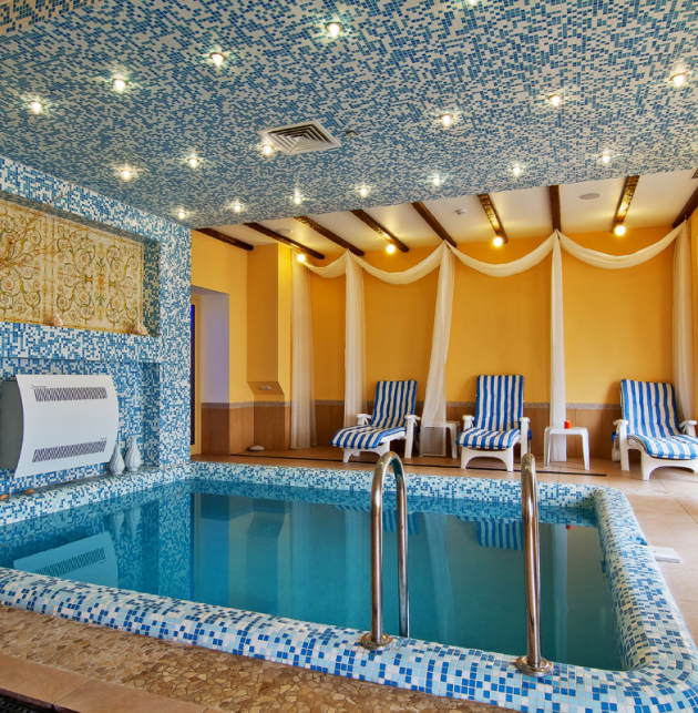 Бассейн имеет подогрев, температурный режим поддерживается специальной системой, которая не позволяет воде перегреваться или переохлаждаться. Около бассейна оборудованы места отдыха, где посетители SPA комплекса могут приятно провести время.