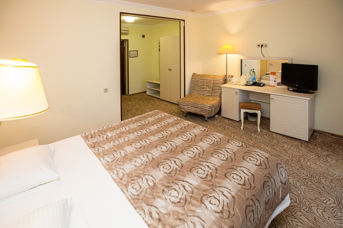 Уютный комфортабельный однокомнатный номер площадью 25 кв. м с двуспальной или с двумя раздельными кроватями.